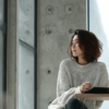 , natural soft daylight filtering through a window - ポイント: 窓から差し込む柔らかな光を再現します。人物の輪郭がふんわりと溶け込み、一気に「おしゃれなカタログ写真」のようなクオリティになります。