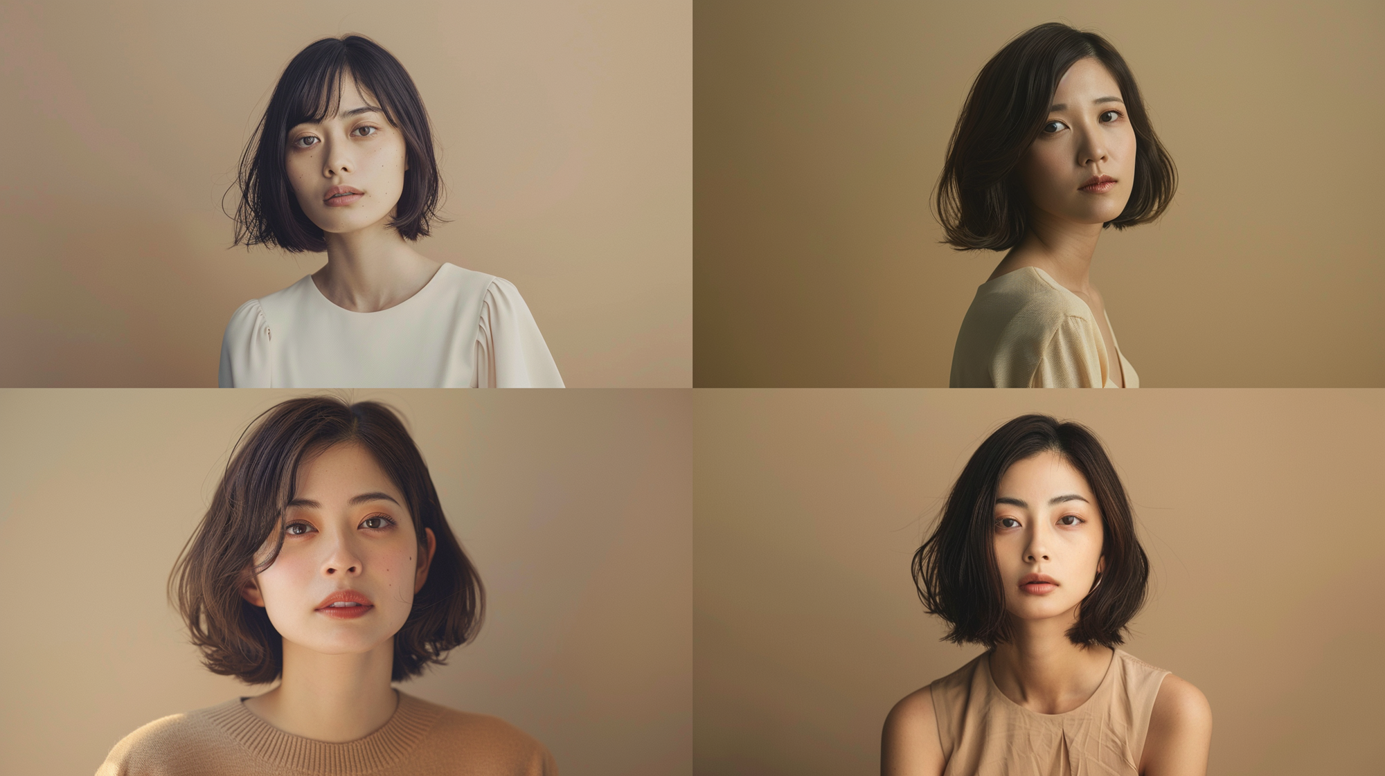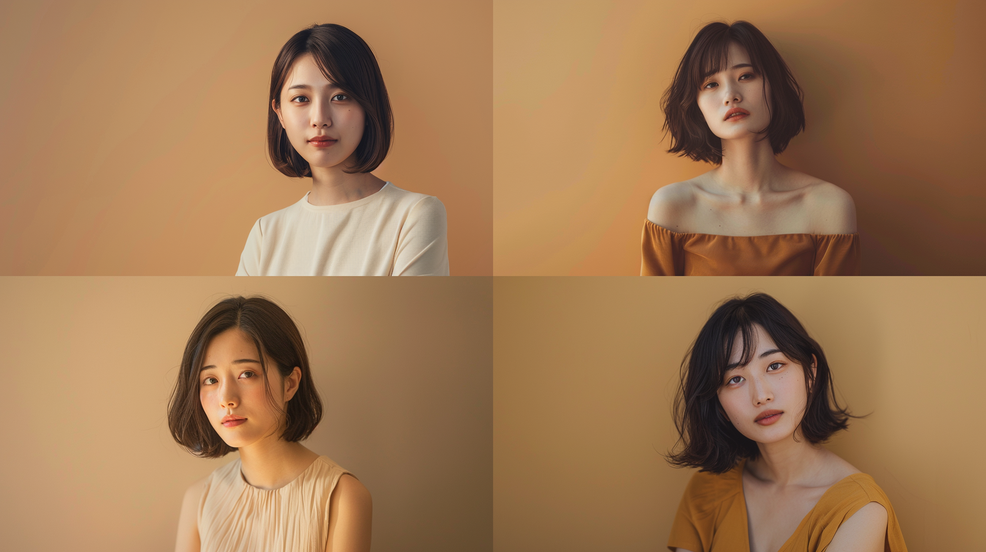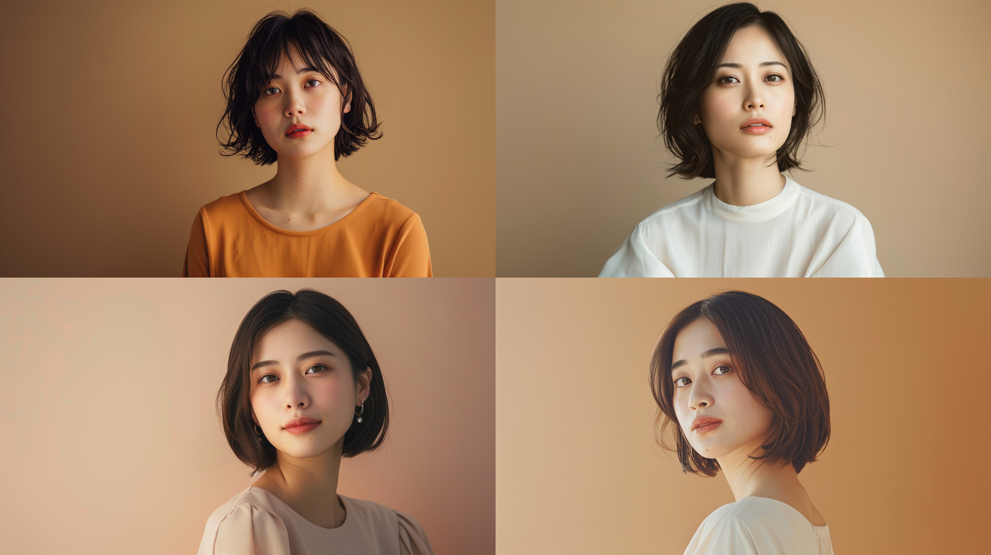 ベースとなるモデルさんは、読者の方も使いやすい「30歳の日本人女性・ボブ・背景ブラウン」で統一しました。