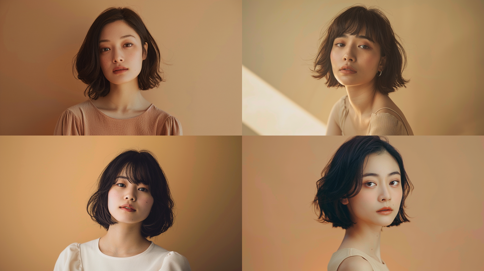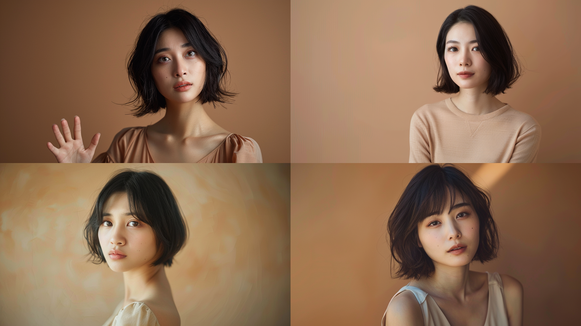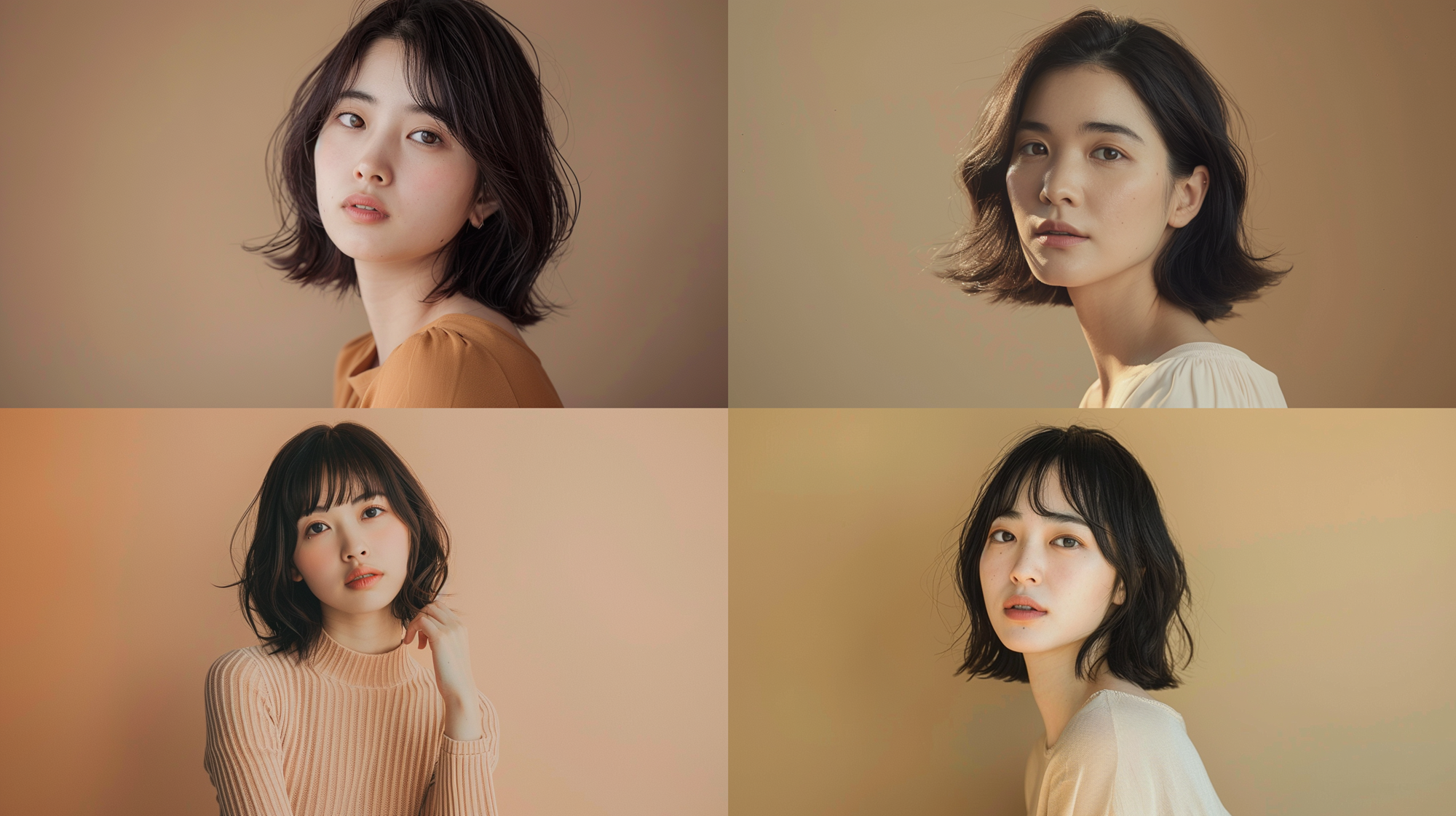ベースとなるモデルさんは、読者の方も使いやすい「30歳の日本人女性・ボブ・背景ブラウン」で統一しました。